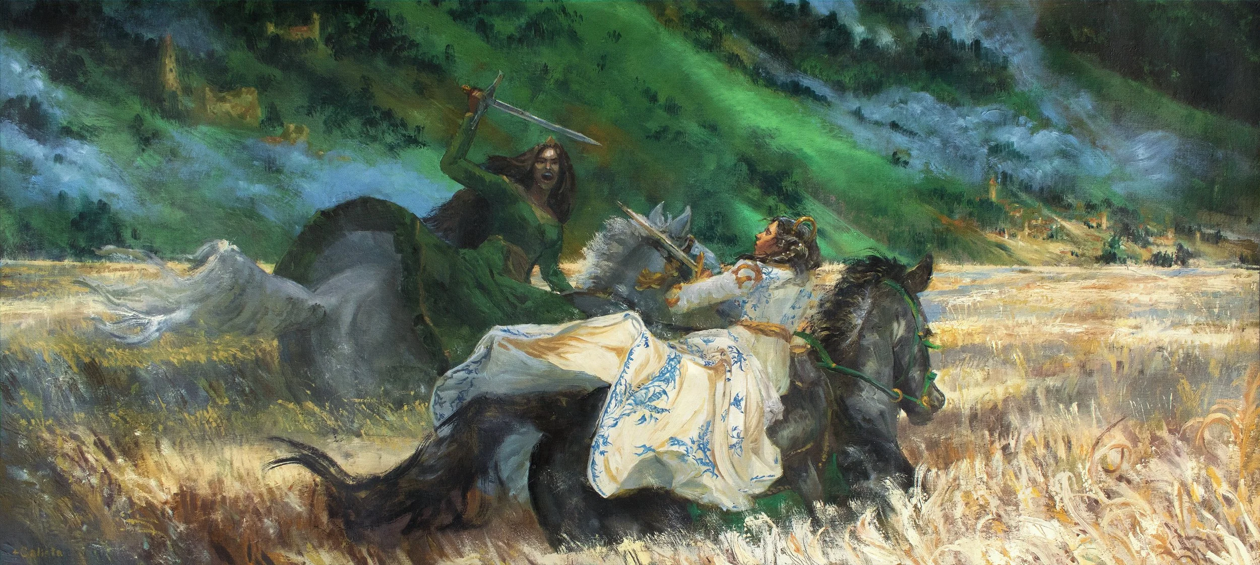 “Old Friends, mixed media (oil paint and digital), A tale of a coin with two sides; one of bitterness, contempt, and betrayal. The other of hope, bravery, and a new light.”