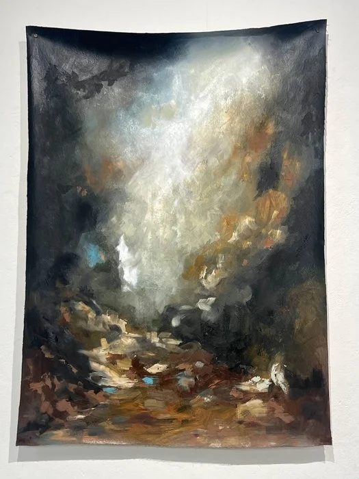 “Through painting, my work explores the cyclical nature of trauma, decay, and social isolation around my disillusionment with the American Dream as a transgender individual. My fascination lies with landscapes that do not exist in our reality but mimic and allude to the vast spread of environments found within the continental United States, creating abstracted psychological landscapes. In particular, I have an innate interest in the myth built around the apocalyptic landscape, presenting a world that does not yet exist as a metaphor for the loaded home space, and how I find comfort within the post-human realm. The land, whether it exists physically or metaphysically, becomes a place of solace and queer homecoming as I work through my own feelings around contemporary events. Elements of the landscape are warped enough to be clockable as different to create a relationship between Otherer and Othered, where the viewer is put in the place of deciding which place in the dynamic they are.”